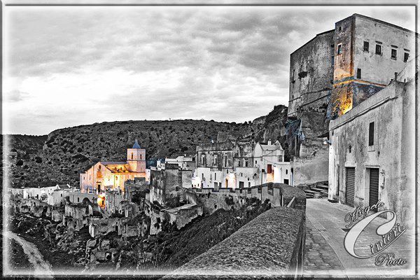 organizational capabilities in the supply of the Roman Empire ... At sunset the whole plain was abandoned because it is fortified villas present were not able to defend this vast territory from the Germanic raids first and then the Saracens , and because the population had contracted because of the famine. The people then took refuge in the ravines , thus was born the ricristianizzato inhabited by Byzantine monks who settled there leaving artistic masterpieces such as the cave church of St. Sophia . The ephemeral Byzantine domination was finally driven out with the advent of the Normans to control the coastline from the attacks of the Saracens did build watchtowers along the coast ... With the advent of the Norman regime he established a feudal lord , and Ginosa was a fief of the third category and was never able to consolidate upon himself a barony stable ... With the end of the Middle Ages began the slow decline of rock civilization . People slowly left the ravine to move to the hill where the present-day village, and architecture " spontaneous " made of highly irregular shapes and sizes , you go to the houses " lamiate " and the case " soprane " Popolicchio the area . It is in this historical moment that " living in a cave " became , from the social point of view , a discriminating factor .